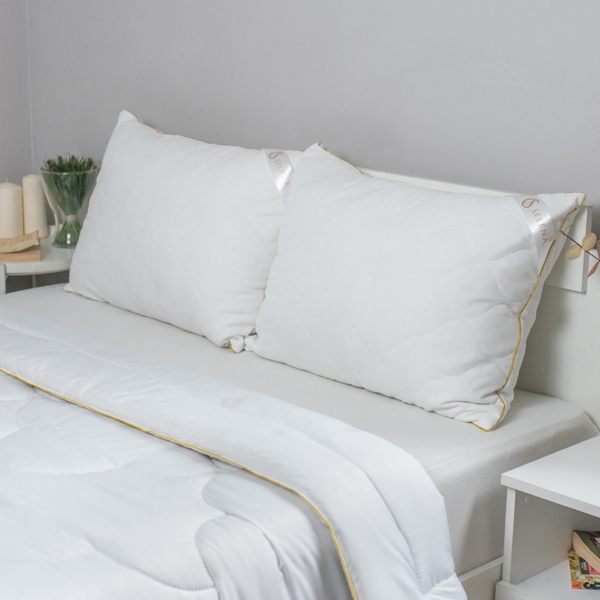 Серия подушек со съемным стеганым чехлом 'Gold line - это мягкий, стильный, невесомый текстиль для вашего дома. Подушка подходит для сна на спине, боку и животе. Съемный стеганный чехол подушки изготовлен из микрофибры, наполнитель из смеси овечей шерсти и высокосиликонизированного полиэфирного микроволокна нового поколения, который удачно сочетает теплозащитные и вентилирующие свойства, влагоустойчив, экологически чист и препятствует возникновению бактерий. Чехол подушки съемный и подходит для деликатной стирки в стиральной машине при температуре не выше 30 градусах. Не отбеливать. Не гладить. Сушить при низких температурах. Подушка упакована в компактную сумку, исключающий повреждения при пересылке.