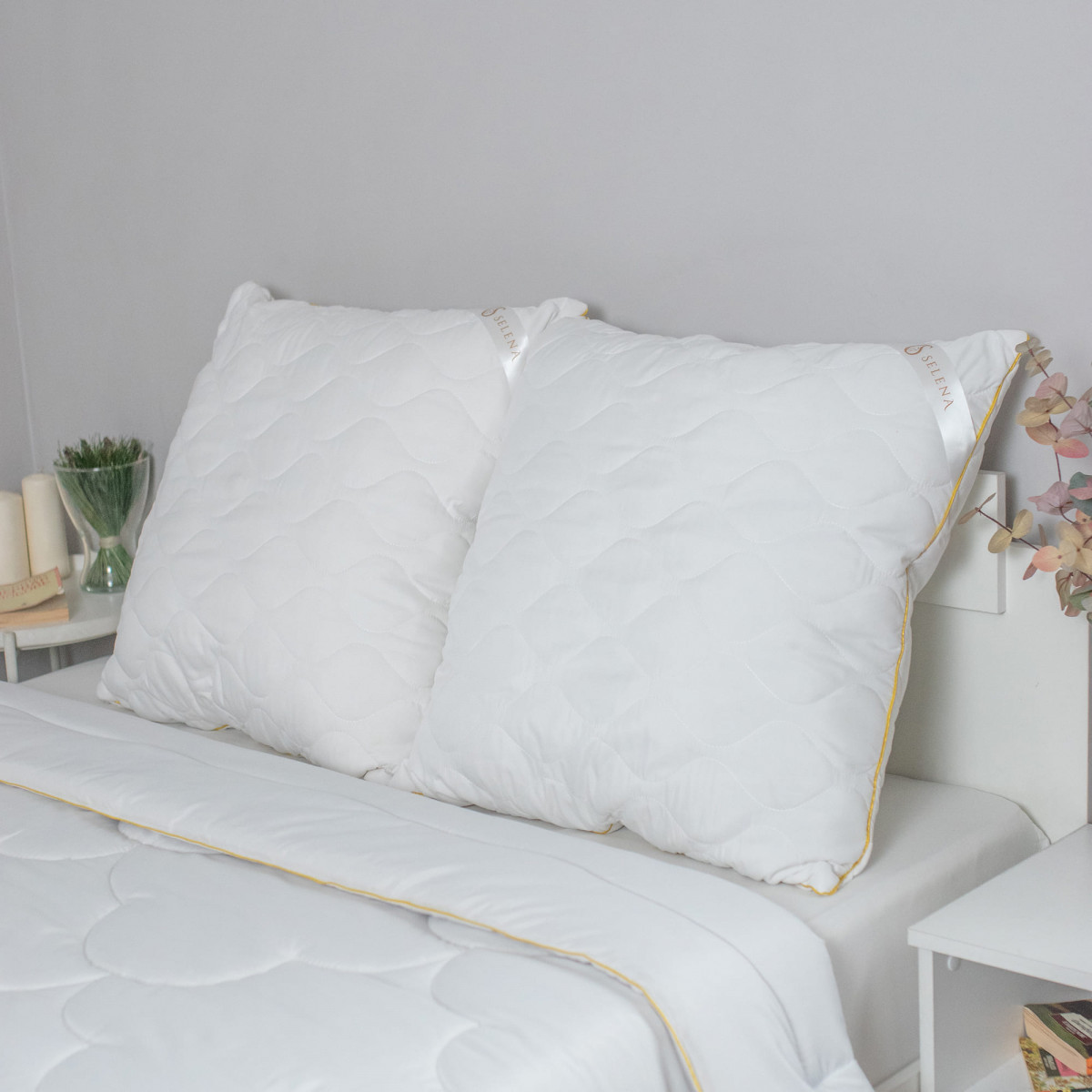 Серия подушек со съемным стеганым чехлом 'Gold line - это мягкий, стильный, невесомый текстиль для вашего дома. Подушка подходит для сна на спине, боку и животе. Съемный стеганный чехол подушки изготовлен из микрофибры, наполнитель из смеси овечей шерсти и высокосиликонизированного полиэфирного микроволокна нового поколения, который удачно сочетает теплозащитные и вентилирующие свойства, влагоустойчив, экологически чист и препятствует возникновению бактерий. Чехол подушки съемный и подходит для деликатной стирки в стиральной машине при температуре не выше 30 градусах. Не отбеливать. Не гладить. Сушить при низких температурах. Подушка упакована в компактную сумку, исключающий повреждения при пересылке.